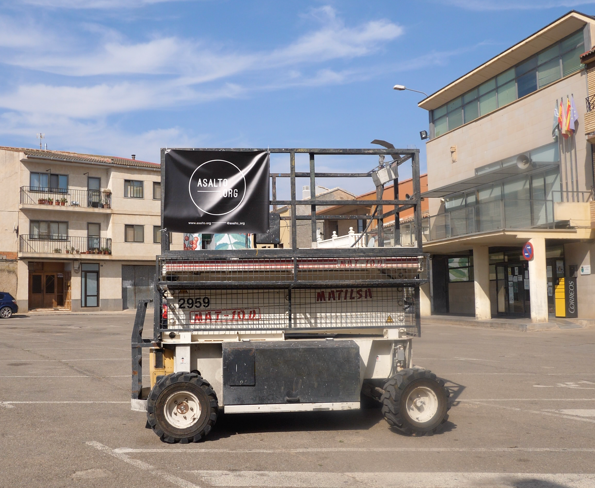 Por último, una lona para las grúas, que facilitarían el trabajo de los artistas a la hora de pintar los murales. Esta lona tendría un uso informativo para aquellos que quisieran seguir las noticias de las actividades desde las redes o buscar información desde la propia página del evento.