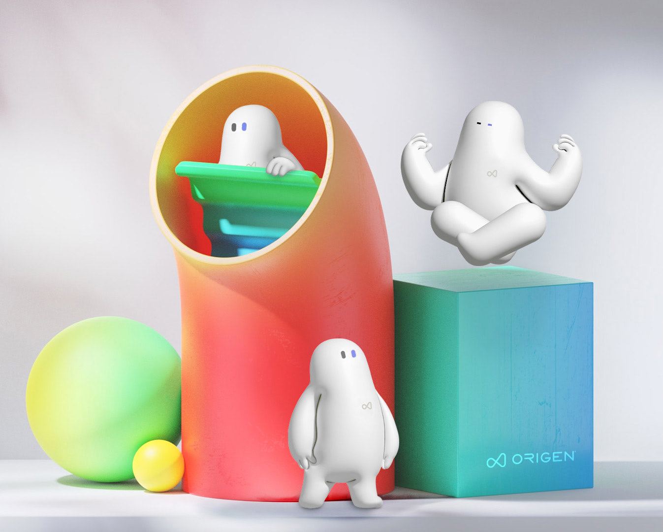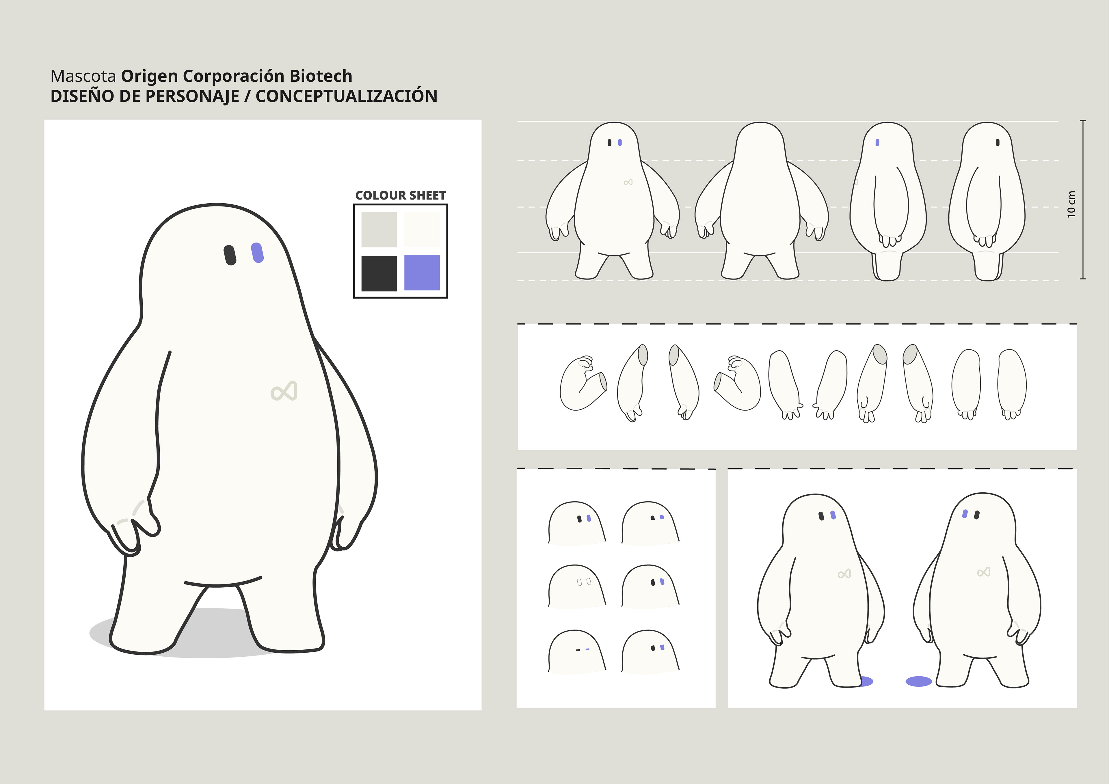 Este proyecto es una continuación de la imagen corporativa de la empresa Origen Corporación Biotech. Se planteó crear una mascota corporativa que reflejara la cara amable, humana y que sirviera de guía para el equipo de forma interna y externa de la entidad.
