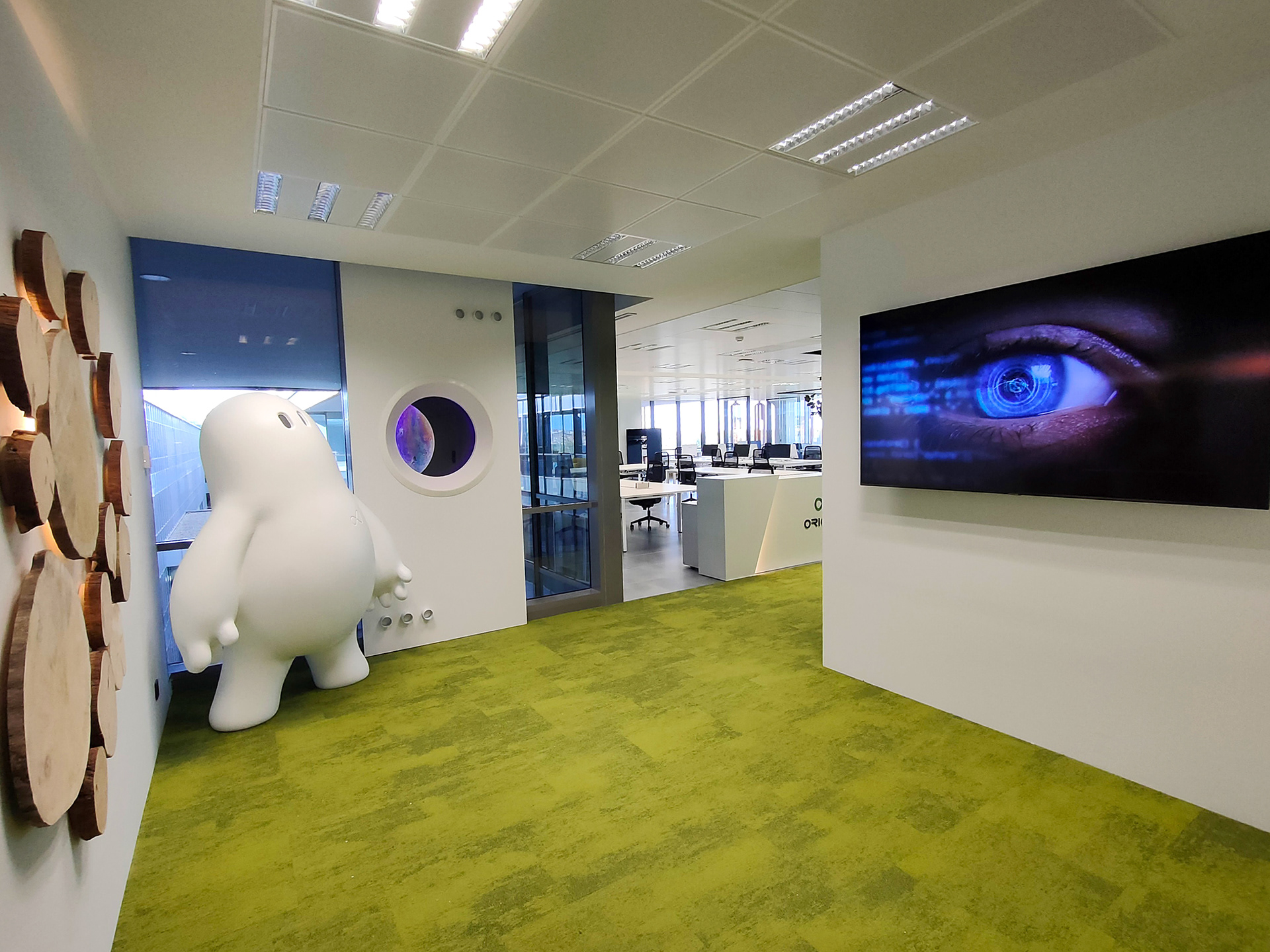 Dado que Origen se separa en dos ramas (la tecnológica y la biogenética), la mascota debía ser una fusión de ambas, por lo que resultó en un androide de aspecto ergonómico, con un toque natural en sus formas, jugando con las curvas y un aire cálido, antes que formas geométricas y colores fríos propios de un robot convencional. "O", como fue bautizado, es un personaje amable diseñado para ayudar a los humanos a comprender las maravillas de la genética y la tecnología, y también se esfuerza en incorporar formas en su comportamiento que nos haga más fácil entender la información que nos facilita.