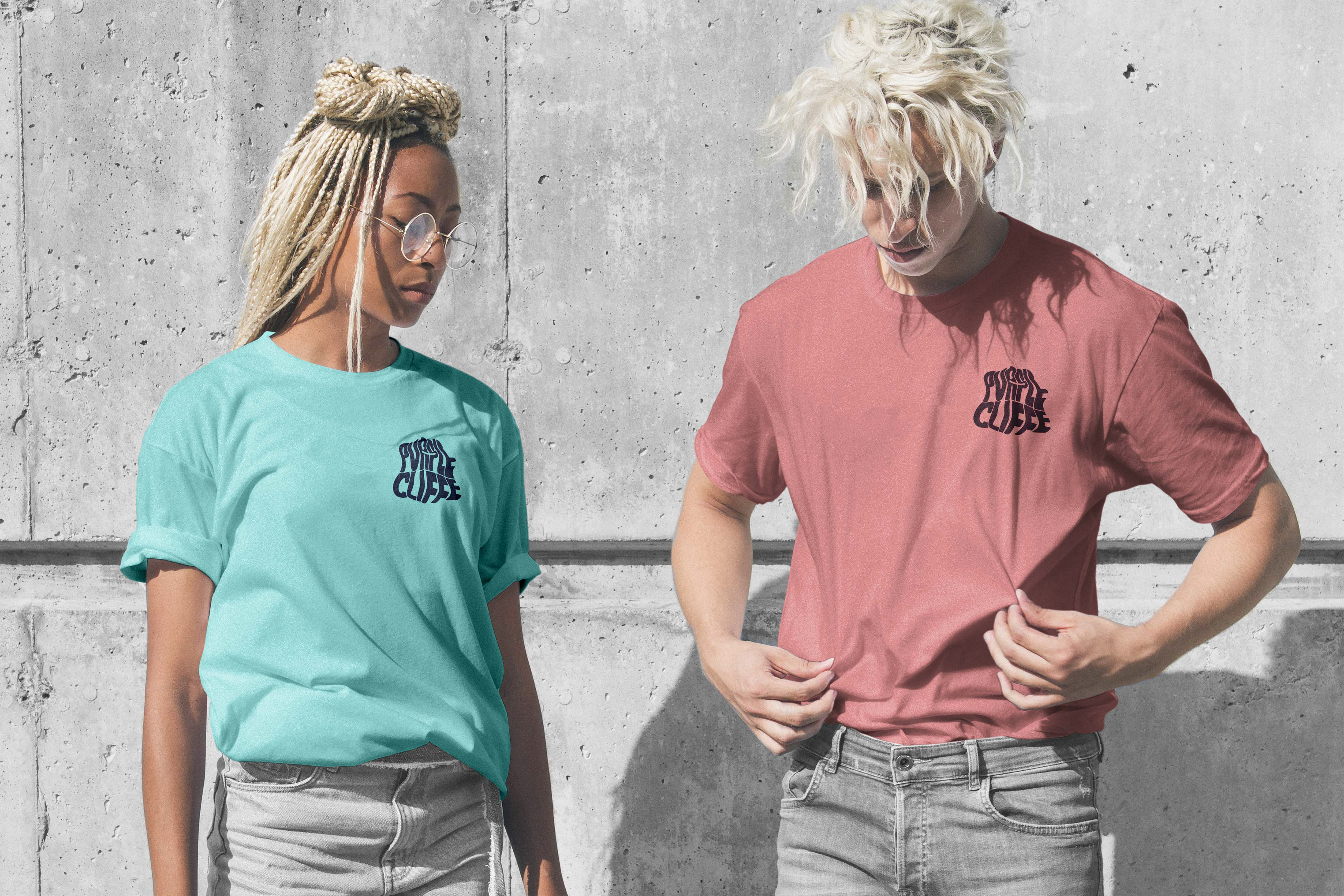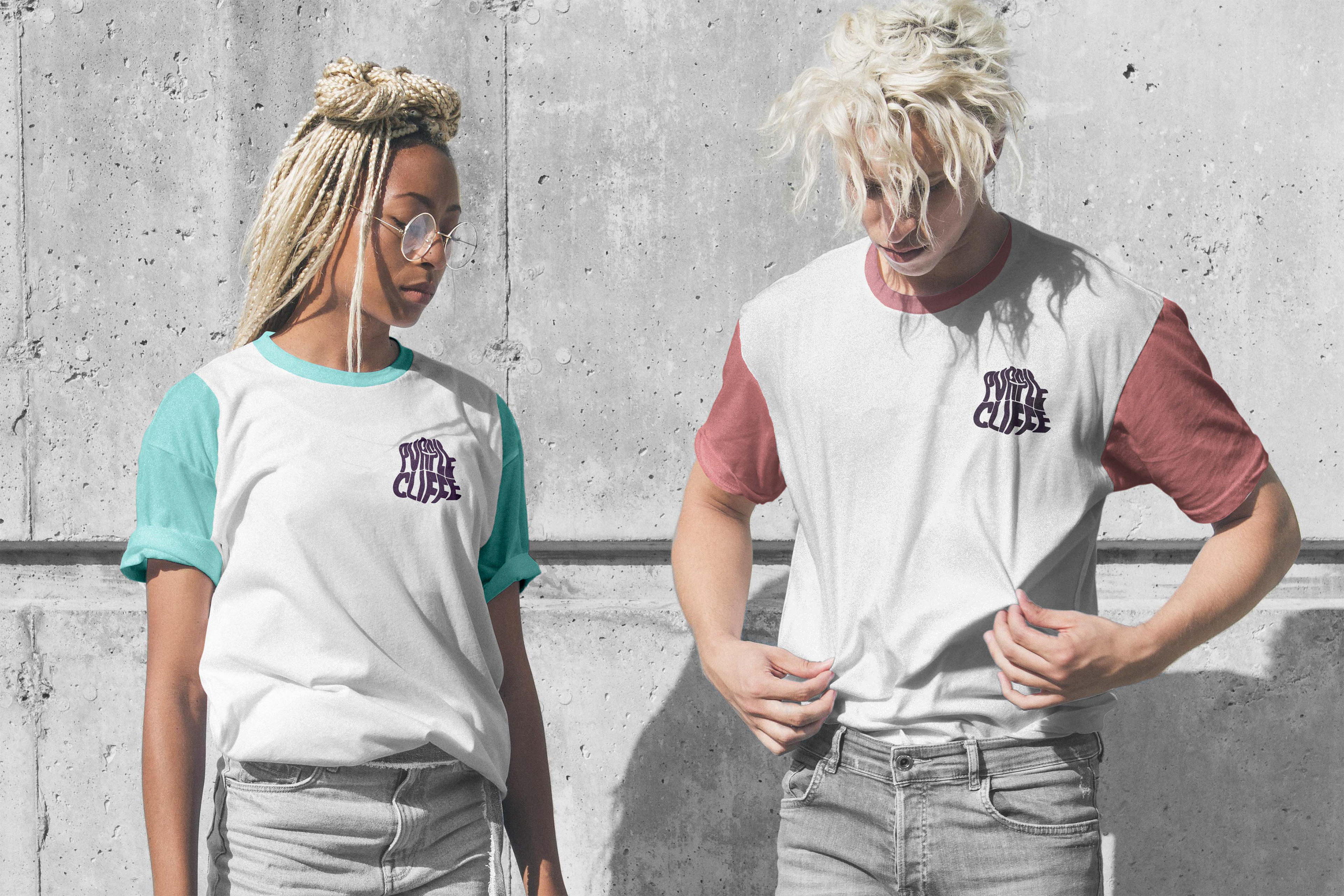 A la hora de aplicar el logotipo al merchandising, me fijé en la ropa que ya tenía Purplecliffe en su tienda; gorras, camisetas y sudaderas. Quizás haya influido alguna represa, pero ante todo he intentado seguir los colores que él mismo elige para su marca.
